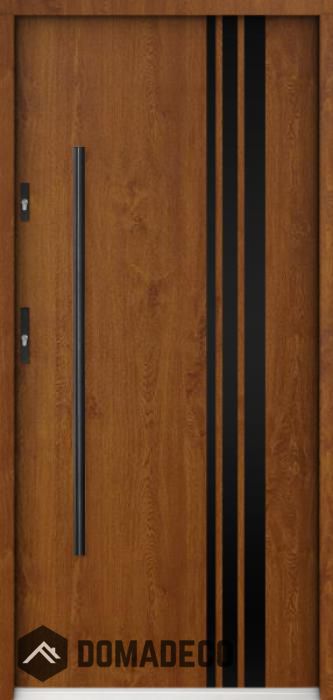 De deur is gemaakt van roestvrij staal. Binnenin is het gevuld met PUR-polyurethaanschuim en hout. De dikte van het deurblad is 55mm. Dubbel afdichtingssysteem - één afdichting bevindt zich in de opening van het kozijn en de andere bevindt zich in het ondersteunende deel van het deurblad. Dit vermindert trillingen en beschermt jouw huis tegen warmteverlies. Het volume verandert niet vonder invloed van atmosferische omstandigheden. Het kozijn heeft in de scharnierdelen en de vergrendelingspunten anti-inbraakversterkingen.