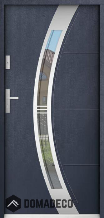 De deur is gemaakt van roestvrij staal. Binnenin is het gevuld met PUR-polyurethaanschuim en hout. De dikte van het deurblad is 55mm. Dubbel afdichtingssysteem - één afdichting bevindt zich in de opening van het kozijn en de andere bevindt zich in het ondersteunende deel van het deurblad. Dit vermindert trillingen en beschermt jouw huis tegen warmteverlies. Het volume verandert niet vonder invloed van atmosferische omstandigheden. Het kozijn heeft in de scharnierdelen en de vergrendelingspunten anti-inbraakversterkingen.
