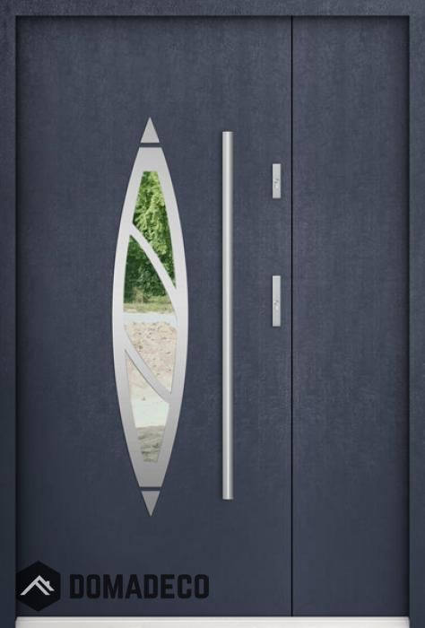 De deur is gemaakt van roestvrij staal. Binnenin is het gevuld met PUR-polyurethaanschuim en hout. De dikte van het deurblad is 55mm. Dubbel afdichtingssysteem - één afdichting bevindt zich in de opening van het kozijn en de andere bevindt zich in het ondersteunende deel van het deurblad. Dit vermindert trillingen en beschermt jouw huis tegen warmteverlies. Het volume verandert niet vonder invloed van atmosferische omstandigheden. Het kozijn heeft in de scharnierdelen en de vergrendelingspunten anti-inbraakversterkingen.