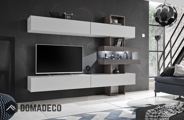Tokyo is een TV-wandmeubel met het beste moderne design. Hij past perfect in elke woonkamer! Het heeft een push-to-open deuropeningssysteem, zonder handgrepen en heeft een open ruimte voor elektronische componenten. De deuren aan de voorkant hebben een openingsmechanisme door middel van een zachte druk. Deuren worden geopend met een push-to-open systeem.