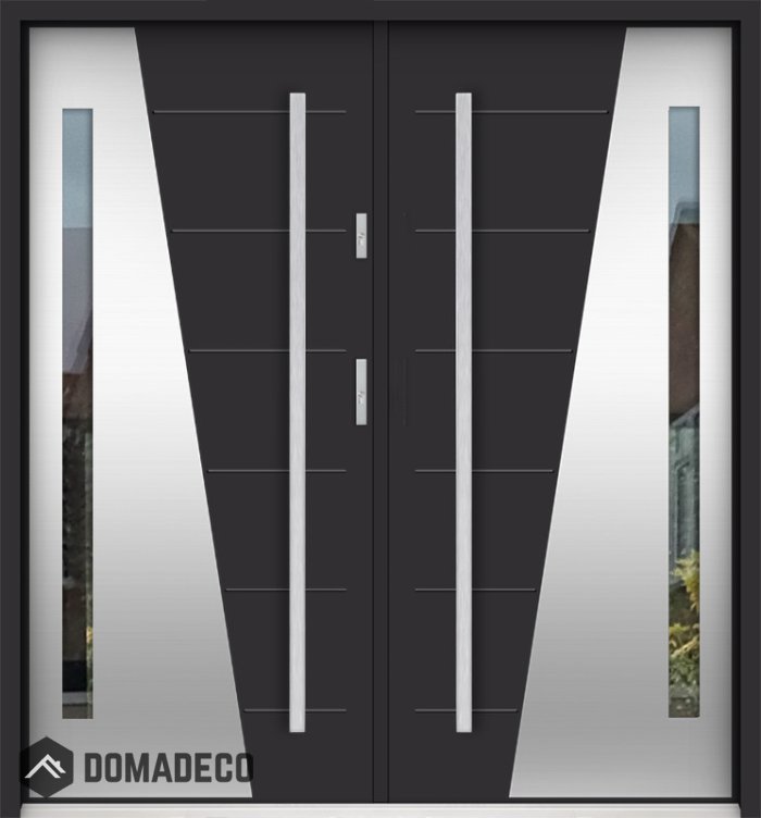 De deur is gemaakt van roestvrij staal. Binnenin is het gevuld met PUR-polyurethaanschuim en hout. De dikte van het deurblad is 55mm. Dubbel afdichtingssysteem - één afdichting bevindt zich in de opening van het kozijn en de andere bevindt zich in het ondersteunende deel van het deurblad. Dit vermindert trillingen en beschermt jouw huis tegen warmteverlies. Het volume verandert niet vonder invloed van atmosferische omstandigheden. Het kozijn heeft in de scharnierdelen en de vergrendelingspunten anti-inbraakversterkingen.