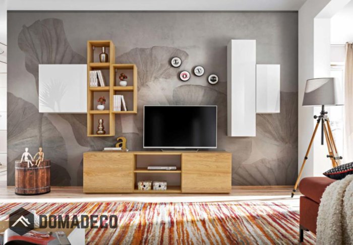houtachtige frontkleur: naturel hickory hout, glanzende frontkleur: glanzend wit