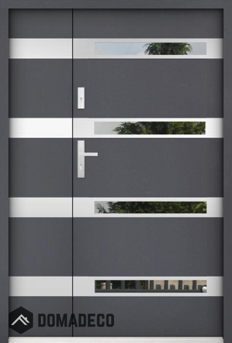 De deur is gemaakt van roestvrij staal. Binnenin is het gevuld met PUR-polyurethaanschuim en hout. De dikte van het deurblad is 55mm. Dubbel afdichtingssysteem - één afdichting bevindt zich in de opening van het kozijn en de andere bevindt zich in het ondersteunende deel van het deurblad. Dit vermindert trillingen en beschermt jouw huis tegen warmteverlies. Het volume verandert niet vonder invloed van atmosferische omstandigheden. Het kozijn heeft in de scharnierdelen en de vergrendelingspunten anti-inbraakversterkingen.