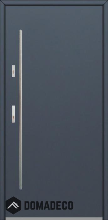 De deur is gemaakt van roestvrij staal. Binnenin is het gevuld met PUR-polyurethaanschuim en hout. De dikte van het deurblad is 64mm. Dubbel afdichtingssysteem - één afdichting bevindt zich in de opening van het kozijn en de andere bevindt zich in het ondersteunende deel van het deurblad. Dit vermindert trillingen en beschermt jouw huis tegen warmteverlies. Het volume verandert niet vonder invloed van atmosferische omstandigheden. Het kozijn heeft in de scharnierdelen en de vergrendelingspunten anti-inbraakversterkingen.