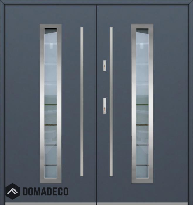 De deur is gemaakt van roestvrij staal. Binnenin is het gevuld met PUR-polyurethaanschuim en hout. De dikte van het deurblad is 54mm. Dubbel afdichtingssysteem - één afdichting bevindt zich in de opening van het kozijn en de andere bevindt zich in het ondersteunende deel van het deurblad. Dit vermindert trillingen en beschermt jouw huis tegen warmteverlies. Het volume verandert niet vonder invloed van atmosferische omstandigheden. Het kozijn heeft in de scharnierdelen en de vergrendelingspunten anti-inbraakversterkingen.