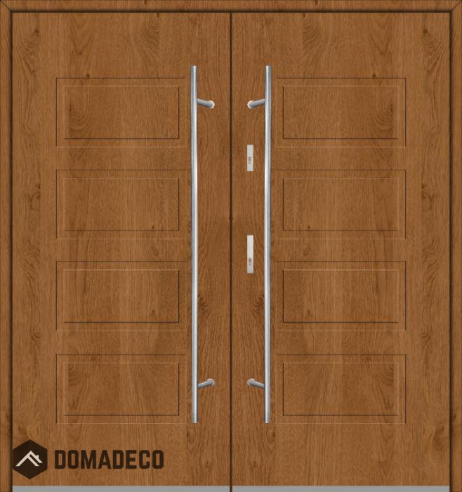 De deur is gemaakt van roestvrij staal. Binnenin is het gevuld met PUR-polyurethaanschuim en hout. De dikte van het deurblad is 54mm. Dubbel afdichtingssysteem - één afdichting bevindt zich in de opening van het kozijn en de andere bevindt zich in het ondersteunende deel van het deurblad. Dit vermindert trillingen en beschermt jouw huis tegen warmteverlies. Het volume verandert niet vonder invloed van atmosferische omstandigheden. Het kozijn heeft in de scharnierdelen en de vergrendelingspunten anti-inbraakversterkingen.