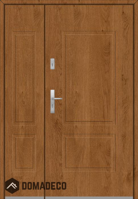 De deur is gemaakt van roestvrij staal. Binnenin is het gevuld met PUR-polyurethaanschuim en hout. De dikte van het deurblad is 54mm. Dubbel afdichtingssysteem - één afdichting bevindt zich in de opening van het kozijn en de andere bevindt zich in het ondersteunende deel van het deurblad. Dit vermindert trillingen en beschermt jouw huis tegen warmteverlies. Het volume verandert niet vonder invloed van atmosferische omstandigheden. Het kozijn heeft in de scharnierdelen en de vergrendelingspunten anti-inbraakversterkingen.