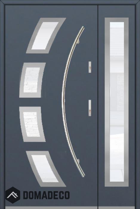 De deur is gemaakt van roestvrij staal. Binnenin is het gevuld met PUR-polyurethaanschuim en hout. De dikte van het deurblad is 54mm. Dubbel afdichtingssysteem - één afdichting bevindt zich in de opening van het kozijn en de andere bevindt zich in het ondersteunende deel van het deurblad. Dit vermindert trillingen en beschermt jouw huis tegen warmteverlies. Het volume verandert niet vonder invloed van atmosferische omstandigheden. Het kozijn heeft in de scharnierdelen en de vergrendelingspunten anti-inbraakversterkingen.