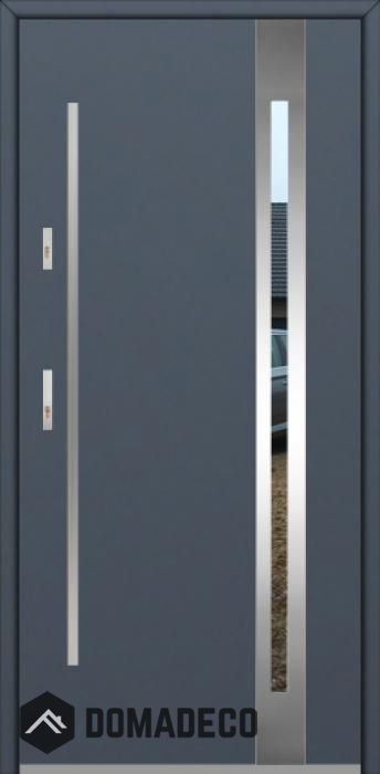 De deur is gemaakt van roestvrij staal. Binnenin is het gevuld met PUR-polyurethaanschuim en hout. De dikte van het deurblad is 64mm. Dubbel afdichtingssysteem - één afdichting bevindt zich in de opening van het kozijn en de andere bevindt zich in het ondersteunende deel van het deurblad. Dit vermindert trillingen en beschermt jouw huis tegen warmteverlies. Het volume verandert niet vonder invloed van atmosferische omstandigheden. Het kozijn heeft in de scharnierdelen en de vergrendelingspunten anti-inbraakversterkingen.
