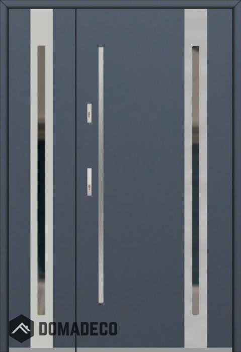 De deur is gemaakt van roestvrij staal. Binnenin is het gevuld met PUR-polyurethaanschuim en hout. De dikte van het deurblad is 54mm. Dubbel afdichtingssysteem - één afdichting bevindt zich in de opening van het kozijn en de andere bevindt zich in het ondersteunende deel van het deurblad. Dit vermindert trillingen en beschermt jouw huis tegen warmteverlies. Het volume verandert niet vonder invloed van atmosferische omstandigheden. Het kozijn heeft in de scharnierdelen en de vergrendelingspunten anti-inbraakversterkingen.