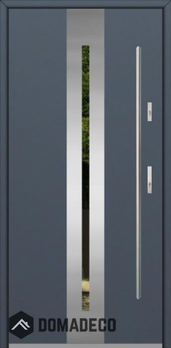 De deur is gemaakt van roestvrij staal. Binnenin is het gevuld met PUR-polyurethaanschuim en hout. De dikte van het deurblad is 64mm. Dubbel afdichtingssysteem - één afdichting bevindt zich in de opening van het kozijn en de andere bevindt zich in het ondersteunende deel van het deurblad. Dit vermindert trillingen en beschermt jouw huis tegen warmteverlies. Het volume verandert niet vonder invloed van atmosferische omstandigheden. Het kozijn heeft in de scharnierdelen en de vergrendelingspunten anti-inbraakversterkingen.