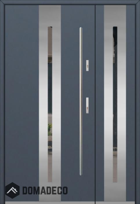 De deur is gemaakt van roestvrij staal. Binnenin is het gevuld met PUR-polyurethaanschuim en hout. De dikte van het deurblad is 54mm. Dubbel afdichtingssysteem - één afdichting bevindt zich in de opening van het kozijn en de andere bevindt zich in het ondersteunende deel van het deurblad. Dit vermindert trillingen en beschermt jouw huis tegen warmteverlies. Het volume verandert niet vonder invloed van atmosferische omstandigheden. Het kozijn heeft in de scharnierdelen en de vergrendelingspunten anti-inbraakversterkingen.