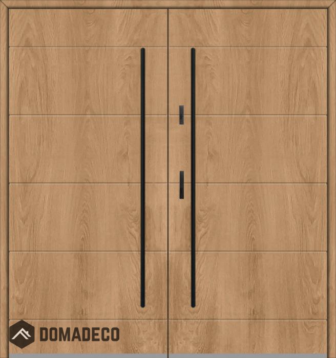 De deur is gemaakt van roestvrij staal. Binnenin is het gevuld met PUR-polyurethaanschuim en hout. De dikte van het deurblad is 54mm. Dubbel afdichtingssysteem - één afdichting bevindt zich in de opening van het kozijn en de andere bevindt zich in het ondersteunende deel van het deurblad. Dit vermindert trillingen en beschermt jouw huis tegen warmteverlies. Het volume verandert niet vonder invloed van atmosferische omstandigheden. Het kozijn heeft in de scharnierdelen en de vergrendelingspunten anti-inbraakversterkingen.