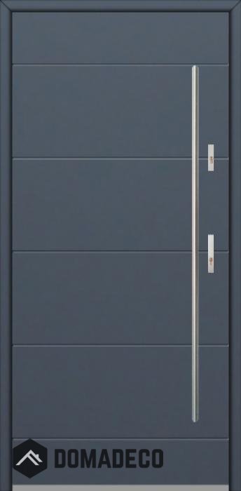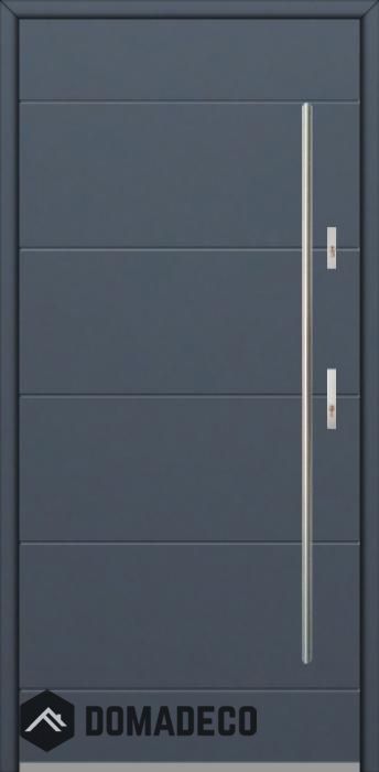 De deur is gemaakt van roestvrij staal. Binnenin is het gevuld met PUR-polyurethaanschuim en hout. De dikte van het deurblad is 64mm. Dubbel afdichtingssysteem - één afdichting bevindt zich in de opening van het kozijn en de andere bevindt zich in het ondersteunende deel van het deurblad. Dit vermindert trillingen en beschermt jouw huis tegen warmteverlies. Het volume verandert niet vonder invloed van atmosferische omstandigheden. Het kozijn heeft in de scharnierdelen en de vergrendelingspunten anti-inbraakversterkingen.