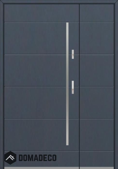 De deur is gemaakt van roestvrij staal. Binnenin is het gevuld met PUR-polyurethaanschuim en hout. De dikte van het deurblad is 54mm. Dubbel afdichtingssysteem - één afdichting bevindt zich in de opening van het kozijn en de andere bevindt zich in het ondersteunende deel van het deurblad. Dit vermindert trillingen en beschermt jouw huis tegen warmteverlies. Het volume verandert niet vonder invloed van atmosferische omstandigheden. Het kozijn heeft in de scharnierdelen en de vergrendelingspunten anti-inbraakversterkingen.