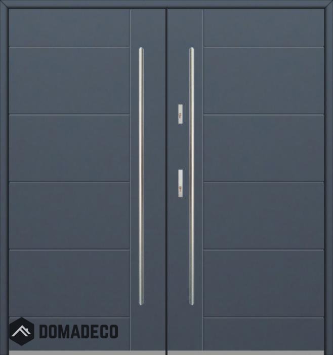 De deur is gemaakt van roestvrij staal. Binnenin is het gevuld met PUR-polyurethaanschuim en hout. De dikte van het deurblad is 54mm. Dubbel afdichtingssysteem - één afdichting bevindt zich in de opening van het kozijn en de andere bevindt zich in het ondersteunende deel van het deurblad. Dit vermindert trillingen en beschermt jouw huis tegen warmteverlies. Het volume verandert niet vonder invloed van atmosferische omstandigheden. Het kozijn heeft in de scharnierdelen en de vergrendelingspunten anti-inbraakversterkingen.
