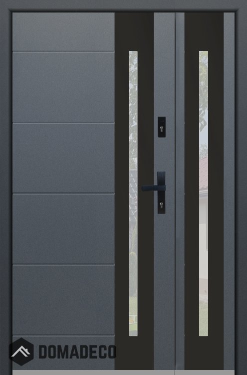 De deur is gemaakt van roestvrij staal. Binnenin is het gevuld met PUR-polyurethaanschuim en hout. De dikte van het deurblad is 54mm. Dubbel afdichtingssysteem - één afdichting bevindt zich in de opening van het kozijn en de andere bevindt zich in het ondersteunende deel van het deurblad. Dit vermindert trillingen en beschermt jouw huis tegen warmteverlies. Het volume verandert niet vonder invloed van atmosferische omstandigheden. Het kozijn heeft in de scharnierdelen en de vergrendelingspunten anti-inbraakversterkingen.