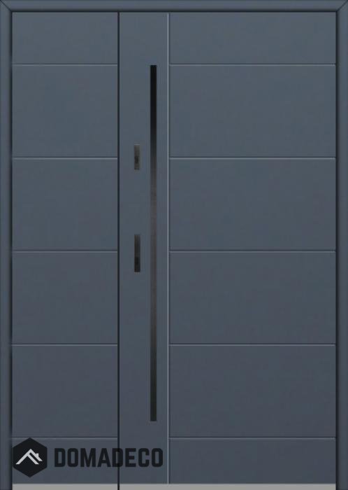 De deur is gemaakt van roestvrij staal. Binnenin is het gevuld met PUR-polyurethaanschuim en hout. De dikte van het deurblad is 54mm. Dubbel afdichtingssysteem - één afdichting bevindt zich in de opening van het kozijn en de andere bevindt zich in het ondersteunende deel van het deurblad. Dit vermindert trillingen en beschermt jouw huis tegen warmteverlies. Het volume verandert niet vonder invloed van atmosferische omstandigheden. Het kozijn heeft in de scharnierdelen en de vergrendelingspunten anti-inbraakversterkingen.