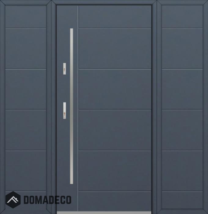 De deur is gemaakt van roestvrij staal. Binnenin is het gevuld met PUR-polyurethaanschuim en hout. De dikte van het deurblad is 54mm. Dubbel afdichtingssysteem - één afdichting bevindt zich in de opening van het kozijn en de andere bevindt zich in het ondersteunende deel van het deurblad. Dit vermindert trillingen en beschermt jouw huis tegen warmteverlies. Het volume verandert niet vonder invloed van atmosferische omstandigheden. Het kozijn heeft in de scharnierdelen en de vergrendelingspunten anti-inbraakversterkingen.