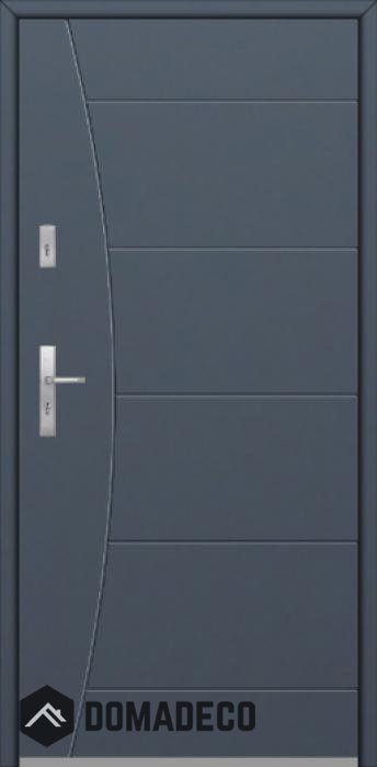 De deur is gemaakt van roestvrij staal. Binnenin is het gevuld met PUR-polyurethaanschuim en hout. De dikte van het deurblad is 64mm. Dubbel afdichtingssysteem - één afdichting bevindt zich in de opening van het kozijn en de andere bevindt zich in het ondersteunende deel van het deurblad. Dit vermindert trillingen en beschermt jouw huis tegen warmteverlies. Het volume verandert niet vonder invloed van atmosferische omstandigheden. Het kozijn heeft in de scharnierdelen en de vergrendelingspunten anti-inbraakversterkingen.