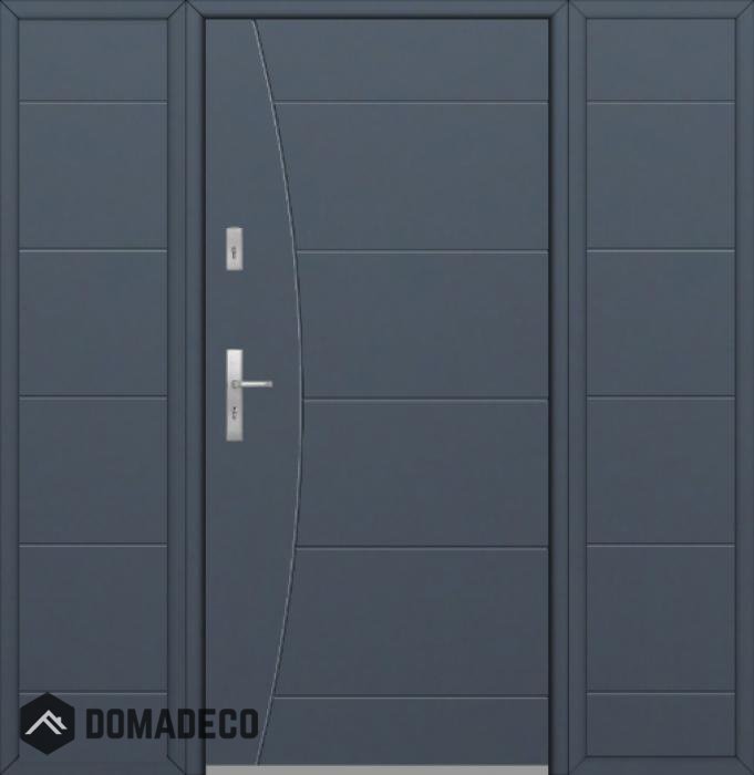 De deur is gemaakt van roestvrij staal. Binnenin is het gevuld met PUR-polyurethaanschuim en hout. De dikte van het deurblad is 54mm. Dubbel afdichtingssysteem - één afdichting bevindt zich in de opening van het kozijn en de andere bevindt zich in het ondersteunende deel van het deurblad. Dit vermindert trillingen en beschermt jouw huis tegen warmteverlies. Het volume verandert niet vonder invloed van atmosferische omstandigheden. Het kozijn heeft in de scharnierdelen en de vergrendelingspunten anti-inbraakversterkingen.