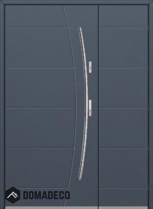 De deur is gemaakt van roestvrij staal. Binnenin is het gevuld met PUR-polyurethaanschuim en hout. De dikte van het deurblad is 54mm. Dubbel afdichtingssysteem - één afdichting bevindt zich in de opening van het kozijn en de andere bevindt zich in het ondersteunende deel van het deurblad. Dit vermindert trillingen en beschermt jouw huis tegen warmteverlies. Het volume verandert niet vonder invloed van atmosferische omstandigheden. Het kozijn heeft in de scharnierdelen en de vergrendelingspunten anti-inbraakversterkingen.