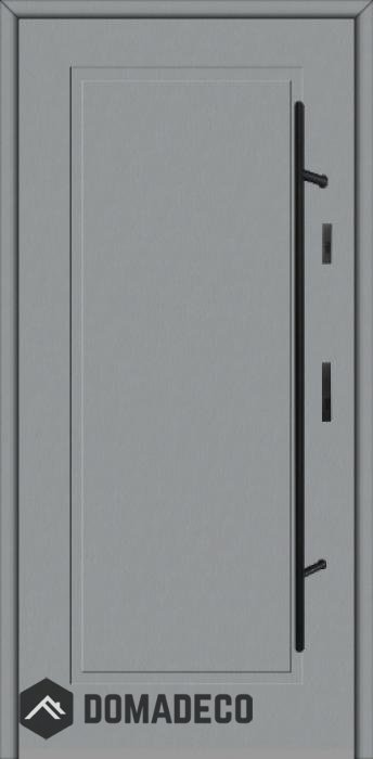 De deur is gemaakt van roestvrij staal. Binnenin is het gevuld met PUR-polyurethaanschuim en hout. De dikte van het deurblad is 64mm. Dubbel afdichtingssysteem - één afdichting bevindt zich in de opening van het kozijn en de andere bevindt zich in het ondersteunende deel van het deurblad. Dit vermindert trillingen en beschermt jouw huis tegen warmteverlies. Het volume verandert niet vonder invloed van atmosferische omstandigheden. Het kozijn heeft in de scharnierdelen en de vergrendelingspunten anti-inbraakversterkingen.