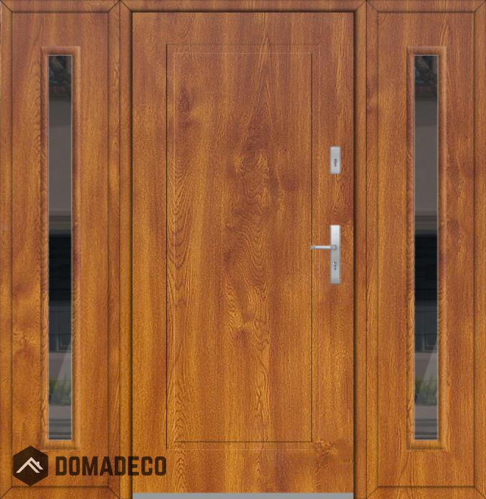 De deur is gemaakt van roestvrij staal. Binnenin is het gevuld met PUR-polyurethaanschuim en hout. De dikte van het deurblad is 54mm. Dubbel afdichtingssysteem - één afdichting bevindt zich in de opening van het kozijn en de andere bevindt zich in het ondersteunende deel van het deurblad. Dit vermindert trillingen en beschermt jouw huis tegen warmteverlies. Het volume verandert niet vonder invloed van atmosferische omstandigheden. Het kozijn heeft in de scharnierdelen en de vergrendelingspunten anti-inbraakversterkingen.