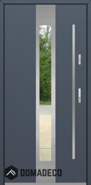 De deur is gemaakt van roestvrij staal. Binnenin is het gevuld met PUR-polyurethaanschuim en hout. De dikte van het deurblad is 64mm. Dubbel afdichtingssysteem - één afdichting bevindt zich in de opening van het kozijn en de andere bevindt zich in het ondersteunende deel van het deurblad. Dit vermindert trillingen en beschermt jouw huis tegen warmteverlies. Het volume verandert niet vonder invloed van atmosferische omstandigheden. Het kozijn heeft in de scharnierdelen en de vergrendelingspunten anti-inbraakversterkingen.