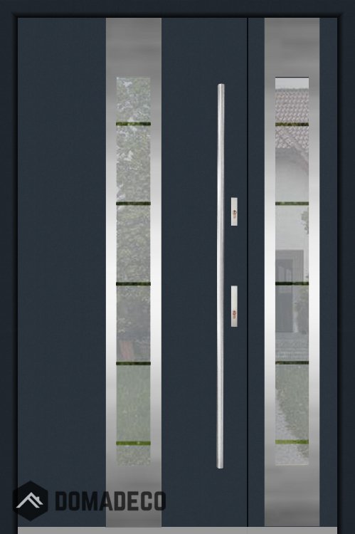 De deur is gemaakt van roestvrij staal. Binnenin is het gevuld met PUR-polyurethaanschuim en hout. De dikte van het deurblad is 54mm. Dubbel afdichtingssysteem - één afdichting bevindt zich in de opening van het kozijn en de andere bevindt zich in het ondersteunende deel van het deurblad. Dit vermindert trillingen en beschermt jouw huis tegen warmteverlies. Het volume verandert niet vonder invloed van atmosferische omstandigheden. Het kozijn heeft in de scharnierdelen en de vergrendelingspunten anti-inbraakversterkingen.