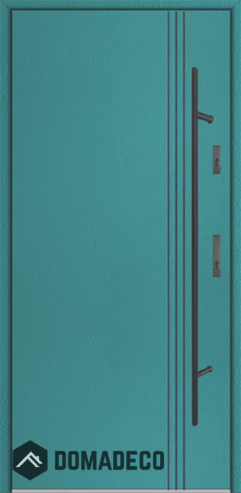 De deur is gemaakt van roestvrij staal. Binnenin is het gevuld met PUR-polyurethaanschuim en hout. De dikte van het deurblad is 64mm. Dubbel afdichtingssysteem - één afdichting bevindt zich in de opening van het kozijn en de andere bevindt zich in het ondersteunende deel van het deurblad. Dit vermindert trillingen en beschermt jouw huis tegen warmteverlies. Het volume verandert niet vonder invloed van atmosferische omstandigheden. Het kozijn heeft in de scharnierdelen en de vergrendelingspunten anti-inbraakversterkingen.