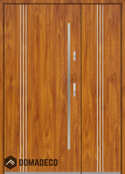 De deur is gemaakt van roestvrij staal. Binnenin is het gevuld met PUR-polyurethaanschuim en hout. De dikte van het deurblad is 54mm. Dubbel afdichtingssysteem - één afdichting bevindt zich in de opening van het kozijn en de andere bevindt zich in het ondersteunende deel van het deurblad. Dit vermindert trillingen en beschermt jouw huis tegen warmteverlies. Het volume verandert niet vonder invloed van atmosferische omstandigheden. Het kozijn heeft in de scharnierdelen en de vergrendelingspunten anti-inbraakversterkingen.