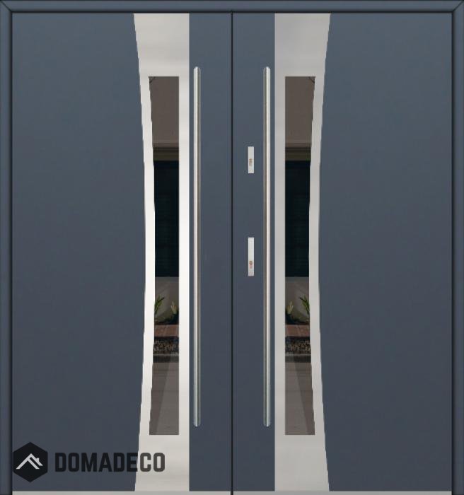 De deur is gemaakt van roestvrij staal. Binnenin is het gevuld met PUR-polyurethaanschuim en hout. De dikte van het deurblad is 54mm. Dubbel afdichtingssysteem - één afdichting bevindt zich in de opening van het kozijn en de andere bevindt zich in het ondersteunende deel van het deurblad. Dit vermindert trillingen en beschermt jouw huis tegen warmteverlies. Het volume verandert niet vonder invloed van atmosferische omstandigheden. Het kozijn heeft in de scharnierdelen en de vergrendelingspunten anti-inbraakversterkingen.