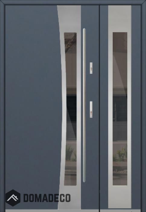 De deur is gemaakt van roestvrij staal. Binnenin is het gevuld met PUR-polyurethaanschuim en hout. De dikte van het deurblad is 54mm. Dubbel afdichtingssysteem - één afdichting bevindt zich in de opening van het kozijn en de andere bevindt zich in het ondersteunende deel van het deurblad. Dit vermindert trillingen en beschermt jouw huis tegen warmteverlies. Het volume verandert niet vonder invloed van atmosferische omstandigheden. Het kozijn heeft in de scharnierdelen en de vergrendelingspunten anti-inbraakversterkingen.