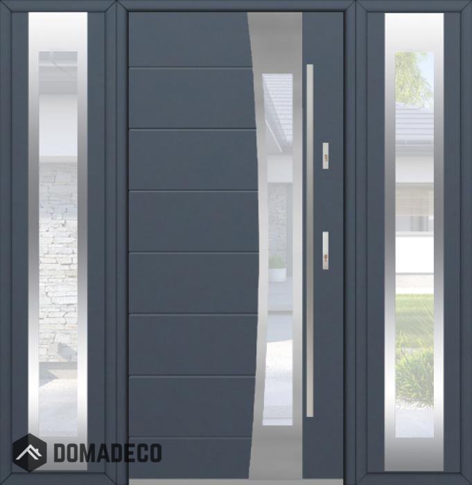 De deur is gemaakt van roestvrij staal. Binnenin is het gevuld met PUR-polyurethaanschuim en hout. De dikte van het deurblad is 54mm. Dubbel afdichtingssysteem - één afdichting bevindt zich in de opening van het kozijn en de andere bevindt zich in het ondersteunende deel van het deurblad. Dit vermindert trillingen en beschermt jouw huis tegen warmteverlies. Het volume verandert niet vonder invloed van atmosferische omstandigheden. Het kozijn heeft in de scharnierdelen en de vergrendelingspunten anti-inbraakversterkingen.