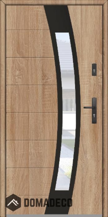 De deur is gemaakt van roestvrij staal. Binnenin is het gevuld met PUR-polyurethaanschuim en hout. De dikte van het deurblad is 64mm. Dubbel afdichtingssysteem - één afdichting bevindt zich in de opening van het kozijn en de andere bevindt zich in het ondersteunende deel van het deurblad. Dit vermindert trillingen en beschermt jouw huis tegen warmteverlies. Het volume verandert niet vonder invloed van atmosferische omstandigheden. Het kozijn heeft in de scharnierdelen en de vergrendelingspunten anti-inbraakversterkingen.