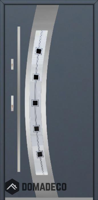 De deur is gemaakt van roestvrij staal. Binnenin is het gevuld met PUR-polyurethaanschuim en hout. De dikte van het deurblad is 64mm. Dubbel afdichtingssysteem - één afdichting bevindt zich in de opening van het kozijn en de andere bevindt zich in het ondersteunende deel van het deurblad. Dit vermindert trillingen en beschermt jouw huis tegen warmteverlies. Het volume verandert niet vonder invloed van atmosferische omstandigheden. Het kozijn heeft in de scharnierdelen en de vergrendelingspunten anti-inbraakversterkingen.