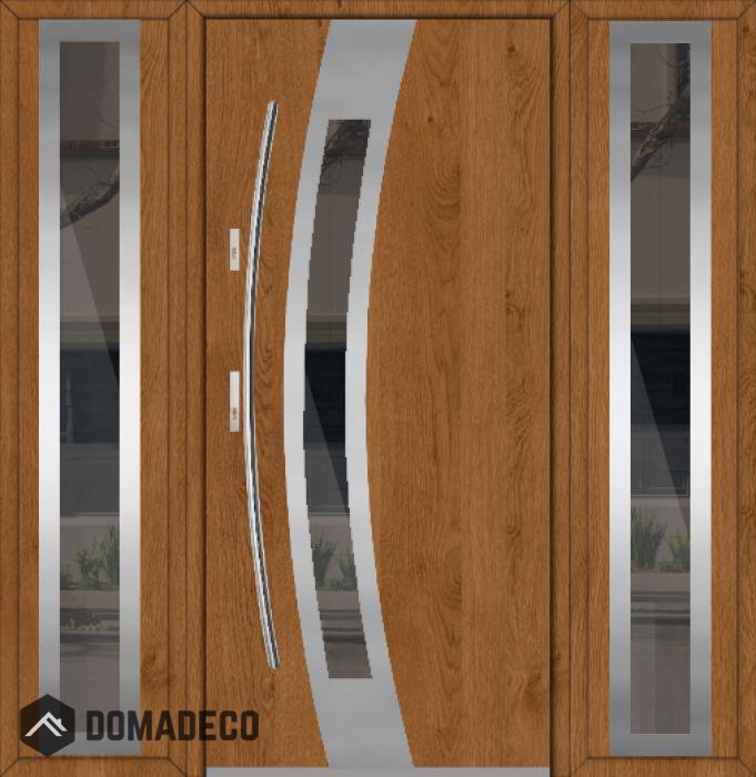 De deur is gemaakt van roestvrij staal. Binnenin is het gevuld met PUR-polyurethaanschuim en hout. De dikte van het deurblad is 54mm. Dubbel afdichtingssysteem - één afdichting bevindt zich in de opening van het kozijn en de andere bevindt zich in het ondersteunende deel van het deurblad. Dit vermindert trillingen en beschermt jouw huis tegen warmteverlies. Het volume verandert niet vonder invloed van atmosferische omstandigheden. Het kozijn heeft in de scharnierdelen en de vergrendelingspunten anti-inbraakversterkingen.