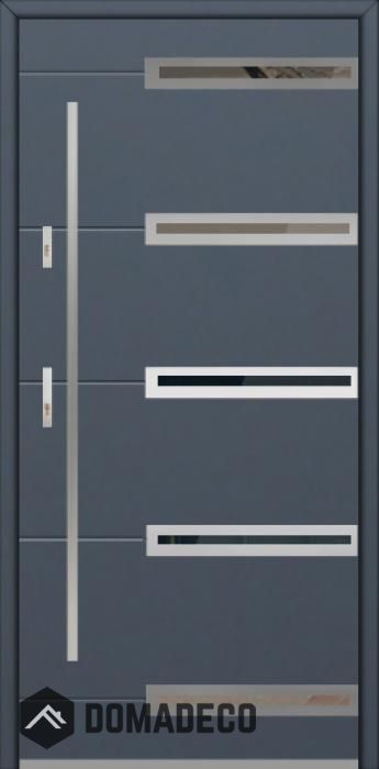 De deur is gemaakt van roestvrij staal. Binnenin is het gevuld met PUR-polyurethaanschuim en hout. De dikte van het deurblad is 64mm. Dubbel afdichtingssysteem - één afdichting bevindt zich in de opening van het kozijn en de andere bevindt zich in het ondersteunende deel van het deurblad. Dit vermindert trillingen en beschermt jouw huis tegen warmteverlies. Het volume verandert niet vonder invloed van atmosferische omstandigheden. Het kozijn heeft in de scharnierdelen en de vergrendelingspunten anti-inbraakversterkingen.