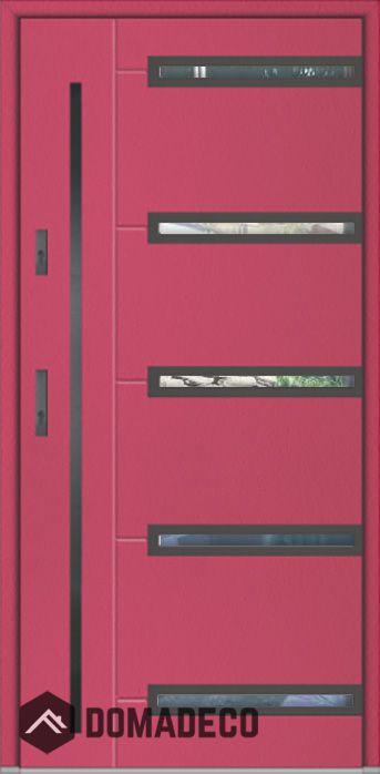 De deur is gemaakt van roestvrij staal. Binnenin is het gevuld met PUR-polyurethaanschuim en hout. De dikte van het deurblad is 64mm. Dubbel afdichtingssysteem - één afdichting bevindt zich in de opening van het kozijn en de andere bevindt zich in het ondersteunende deel van het deurblad. Dit vermindert trillingen en beschermt jouw huis tegen warmteverlies. Het volume verandert niet vonder invloed van atmosferische omstandigheden. Het kozijn heeft in de scharnierdelen en de vergrendelingspunten anti-inbraakversterkingen.