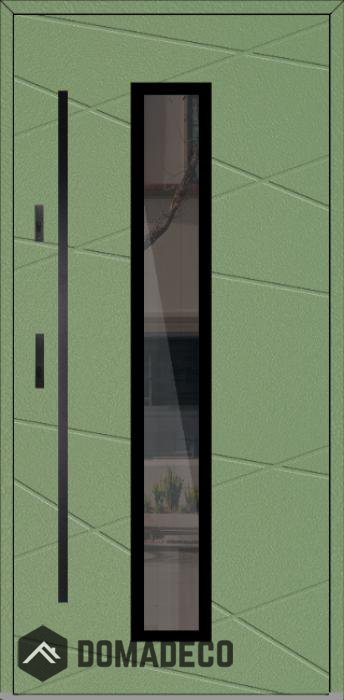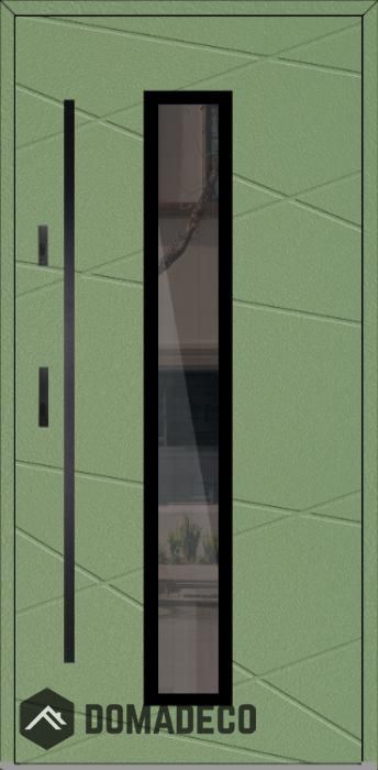 De deur is gemaakt van roestvrij staal. Binnenin is het gevuld met PUR-polyurethaanschuim en hout. De dikte van het deurblad is 64mm. Dubbel afdichtingssysteem - één afdichting bevindt zich in de opening van het kozijn en de andere bevindt zich in het ondersteunende deel van het deurblad. Dit vermindert trillingen en beschermt jouw huis tegen warmteverlies. Het volume verandert niet vonder invloed van atmosferische omstandigheden. Het kozijn heeft in de scharnierdelen en de vergrendelingspunten anti-inbraakversterkingen.