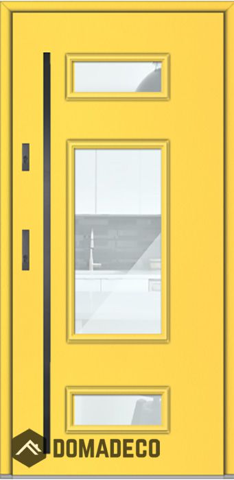 De deur is gemaakt van roestvrij staal. Binnenin is het gevuld met PUR-polyurethaanschuim en hout. De dikte van het deurblad is 64mm. Dubbel afdichtingssysteem - één afdichting bevindt zich in de opening van het kozijn en de andere bevindt zich in het ondersteunende deel van het deurblad. Dit vermindert trillingen en beschermt jouw huis tegen warmteverlies. Het volume verandert niet vonder invloed van atmosferische omstandigheden. Het kozijn heeft in de scharnierdelen en de vergrendelingspunten anti-inbraakversterkingen.