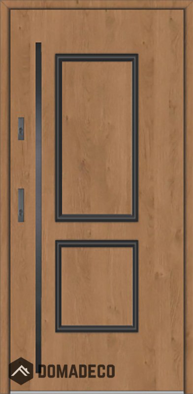 De deur is gemaakt van roestvrij staal. Binnenin is het gevuld met PUR-polyurethaanschuim en hout. De dikte van het deurblad is 64mm. Dubbel afdichtingssysteem - één afdichting bevindt zich in de opening van het kozijn en de andere bevindt zich in het ondersteunende deel van het deurblad. Dit vermindert trillingen en beschermt jouw huis tegen warmteverlies. Het volume verandert niet vonder invloed van atmosferische omstandigheden. Het kozijn heeft in de scharnierdelen en de vergrendelingspunten anti-inbraakversterkingen.