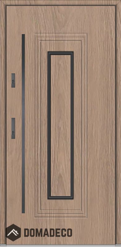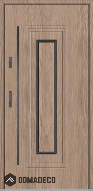 De deur is gemaakt van roestvrij staal. Binnenin is het gevuld met PUR-polyurethaanschuim en hout. De dikte van het deurblad is 64mm. Dubbel afdichtingssysteem - één afdichting bevindt zich in de opening van het kozijn en de andere bevindt zich in het ondersteunende deel van het deurblad. Dit vermindert trillingen en beschermt jouw huis tegen warmteverlies. Het volume verandert niet vonder invloed van atmosferische omstandigheden. Het kozijn heeft in de scharnierdelen en de vergrendelingspunten anti-inbraakversterkingen.
