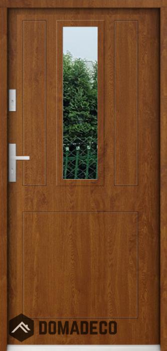 De deur is gemaakt van roestvrij staal. Binnenin is het gevuld met PUR-polyurethaanschuim en hout. De dikte van het deurblad is 55mm. Dubbel afdichtingssysteem - één afdichting bevindt zich in de opening van het kozijn en de andere bevindt zich in het ondersteunende deel van het deurblad. Dit vermindert trillingen en beschermt jouw huis tegen warmteverlies. Het volume verandert niet vonder invloed van atmosferische omstandigheden. Het kozijn heeft in de scharnierdelen en de vergrendelingspunten anti-inbraakversterkingen.