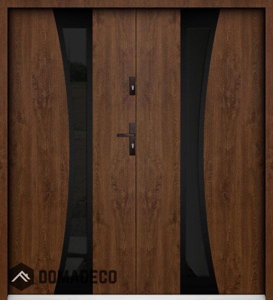 De deur is gemaakt van roestvrij staal. Binnenin is het gevuld met PUR-polyurethaanschuim en hout. De dikte van het deurblad is 55mm. Dubbel afdichtingssysteem - één afdichting bevindt zich in de opening van het kozijn en de andere bevindt zich in het ondersteunende deel van het deurblad. Dit vermindert trillingen en beschermt jouw huis tegen warmteverlies. Het volume verandert niet vonder invloed van atmosferische omstandigheden. Het kozijn heeft in de scharnierdelen en de vergrendelingspunten anti-inbraakversterkingen.