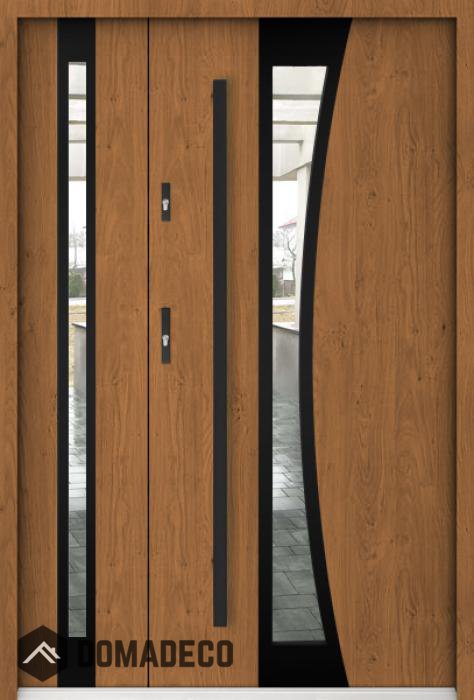 De deur is gemaakt van roestvrij staal. Binnenin is de deur gevuld met PUR-schuim (polyurethaanschuim) en hout. De dikte van het deurblad is 55mm. Dubbel afdichtingssysteem - één afdichting bevindt zich in de deuropening van het kozijn en de andere bevindt zich in het ondersteunende deel van het deurblad. Ze verminderen trillingen en beschermen jouw huis tegen warmteverlies. Ze veranderen hun volume niet onder invloed van atmosferische omstandigheden. Het deurkozijn is in de scharnierdelen en de vergrendelingspunten voorzien van inbraakwerende verstevigingen.