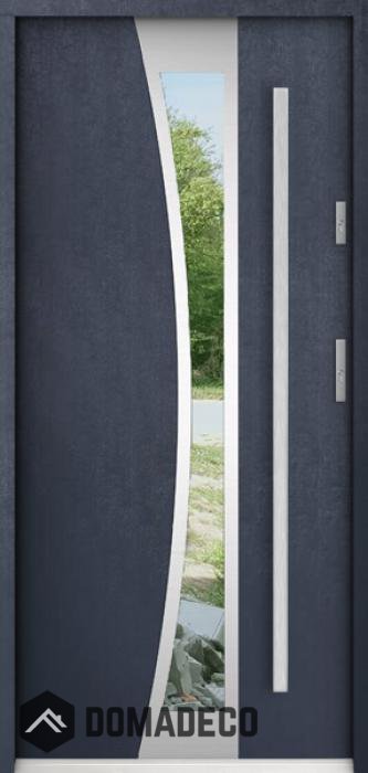 De deur is gemaakt van roestvrij staal. Binnenin is het gevuld met PUR-polyurethaanschuim en hout. De dikte van het deurblad is 55mm. Dubbel afdichtingssysteem - één afdichting bevindt zich in de opening van het kozijn en de andere bevindt zich in het ondersteunende deel van het deurblad. Dit vermindert trillingen en beschermt jouw huis tegen warmteverlies. Het volume verandert niet vonder invloed van atmosferische omstandigheden. Het kozijn heeft in de scharnierdelen en de vergrendelingspunten anti-inbraakversterkingen.