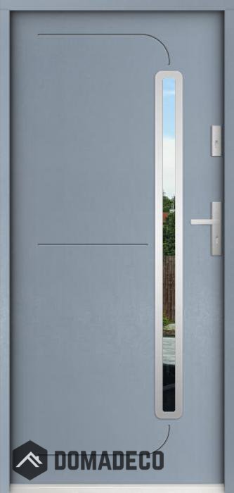 De deur is gemaakt van roestvrij staal. Binnenin is het gevuld met PUR-polyurethaanschuim en hout. De dikte van het deurblad is 55mm. Dubbel afdichtingssysteem - één afdichting bevindt zich in de opening van het kozijn en de andere bevindt zich in het ondersteunende deel van het deurblad. Dit vermindert trillingen en beschermt jouw huis tegen warmteverlies. Het volume verandert niet vonder invloed van atmosferische omstandigheden. Het kozijn heeft in de scharnierdelen en de vergrendelingspunten anti-inbraakversterkingen.