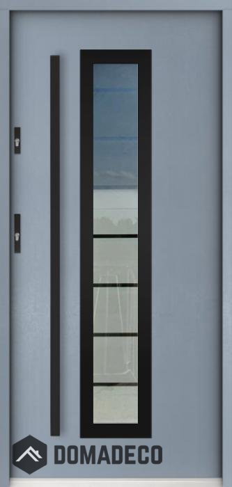 De deur is gemaakt van roestvrij staal. Binnenin is de deur gevuld met PUR-schuim (polyurethaanschuim) en hout. De dikte van het deurblad is 55mm. Dubbel afdichtingssysteem - één afdichting bevindt zich in de deuropening van het kozijn en de andere bevindt zich in het ondersteunende deel van het deurblad. Ze verminderen trillingen en beschermen jouw huis tegen warmteverlies. Ze veranderen hun volume niet onder invloed van atmosferische omstandigheden. Het deurkozijn is in de scharnierdelen en de vergrendelingspunten voorzien van inbraakwerende verstevigingen.